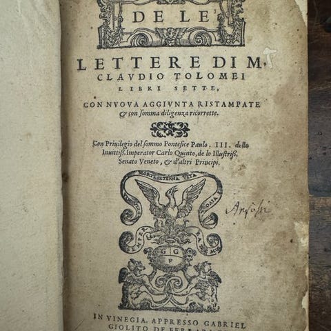 Meget sjælden fjerde udgave (originalen er fra 1654) af et af de mest betydningsfulde essays i semiotik i det XVIIe århundrede. I dette tillader Emanuele Tesauro (1592-1675) intellektuelle at anvende i så frit og udelukkende muligt den retoriske figur metaforen.