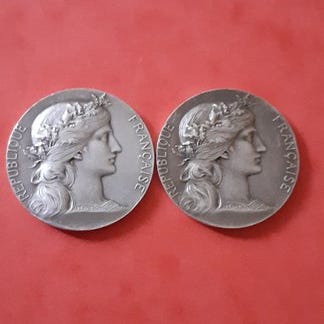 Frankrig. Lot de 3 jetons argent, 1 jetons cuivre, 1 médailles argent