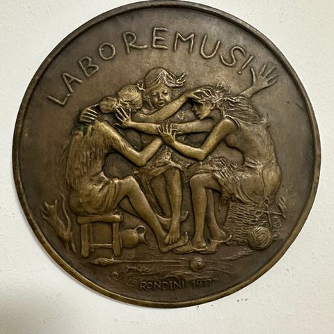 Stor bronzeplade, der afbilder plan over Frosinone og Lazio på højre side. Medaljistens efternavn.