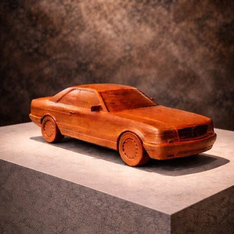 Modellin inspiriert af Renault Fuego 1980 – Bil i ældet egetræ med naturlig oliefinish