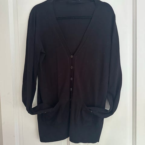 Cardigan, Ubrugt Saint Tropez, str. 42, Ubrugt, Ny. Strikket lang råhvid cardigan. Str L. Med krave og 3/4 ærmer. Med rynker i talje og på ærmer - raglan ærmer med hulmønster. Blød og lækker 45% bomuld og 55% akryl. Kan vaskes ved 30°. Har aldrig været brugt. Længde 90cm fra skulder.. bredde forneden 70cm. Bredde ved talje 50cm. Jeg har mange annoncer med dametøj. Evt brug dba’s søgefelt og skriv: ksø tøj Rabat: ved køb af 3 tøj annoncer, betal for 2 og få den billigste gratis