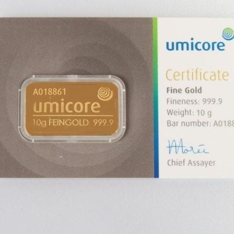 10 gram - Guld 999 - Umicore, Belgium