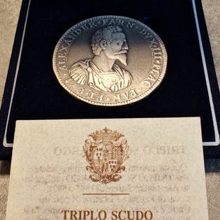 Set af to officielle San Marino-medaljer fra 1969 i sølv 0,800 (100 g) og bronze, præget efter dekret og udgivet 20-11-1969 til fejring af Napoleons fødsels bicentennial og Napoleons møte med Antonio Onofri i 1797; sølvproduktion 2.760 stykker, bronze 3.520 stykker, fremstillet ved S. Johnson-fabrikken, designer E. Monti, i original emballage let beskadiget med originale certifikater. Klik på den blå "gå til varen" knap, for at købe eller byde på denne vare. Den samlede pris vil blive vist inden du afgiver dit bud.