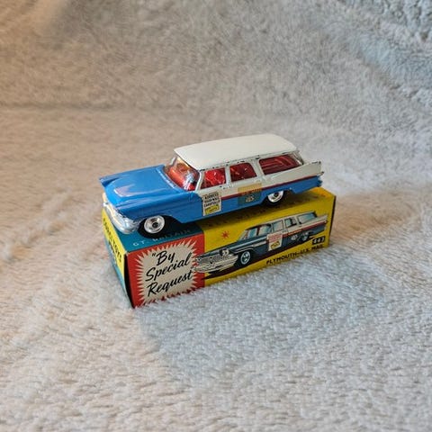 Modellen er i meget god stand for sin alder, hjulene kører let, og den er i originalemballagen. Denne er også meget velbevaret.