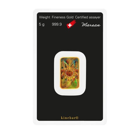 Kinebarren er særlige guldbarer fra Argor-Heraeus. Guldbarrene Kinebar 10 g er en investering i guld og fascinerer samtidig gennem hologrammet i farveskiftende skær på bagsiden af Kinebarren. Guldbarret Kinebarren 10 g er i checkkortformat indpakket i beskyttelsesfolie, hvilket 3-D-effekten af Kinegrammet endnu bedre fremhæves.