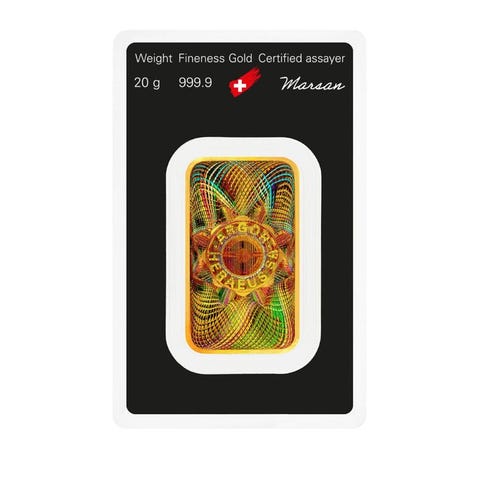 Argor-Heraeus Kinebar guldbarren på 10 g, finhed 999,9, produceret i Schweiz, forseglet i blisterkort med certifikat og LBMA-certificeret. Klik på den blå "gå til varen" knap, for at købe eller byde på denne vare. Den samlede pris vil blive vist inden du afgiver dit bud.