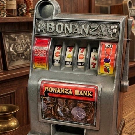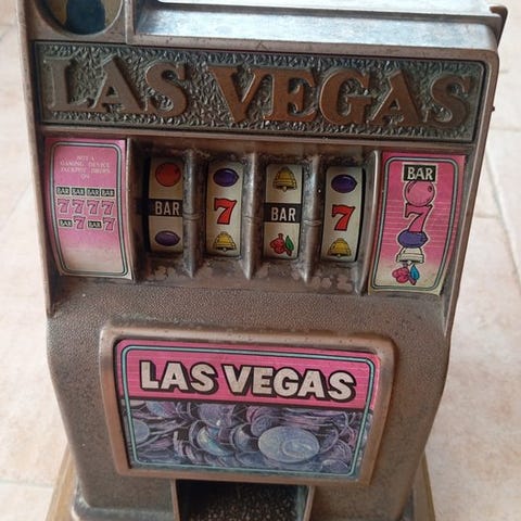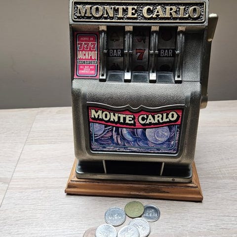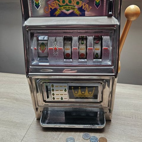 Flot Buckaroo Bank-spillemaskine, fuldt ud funktionsdygtig. Med den brune nuance, der giver den det der lille ansigtsudtryk. Billederne er en integreret del.