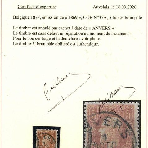 Fra Belgien, COB 20A – Leopold I, venstreprofil – 40c blegt lyserød, perforering 15, udgivelse 65; ægte med hængsel, med certifikat (cote 2150 €). Klik på den blå "gå til varen" knap, for at købe eller byde på denne vare. Den samlede pris vil blive vist inden du afgiver dit bud.