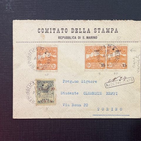 Til salg et fantastisk ark fra Republikken San Marino udstedt den 10. juni 1958, kendt som "Veduta Panoramica".