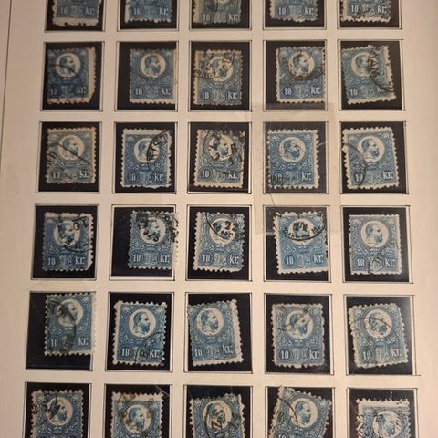 Østrigske kejser-sæt 1908 og jubilæumsudgaven 1910, derudover Heller-værdierne for udgaven 1908 i almindeligt papir. Alle værdier er pænt stemplet, til tider med sjældne stempler