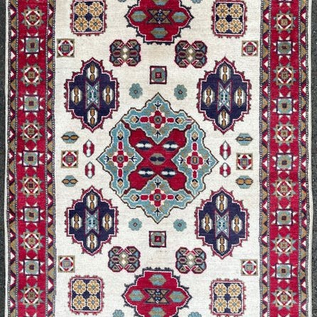 Dette tæppe er af afghansk oprindelse, håndknudet med persisk knude. Fremstillet af kvalitetsuld med vegetabilske farver, på bomuldsvæv og -garn.
