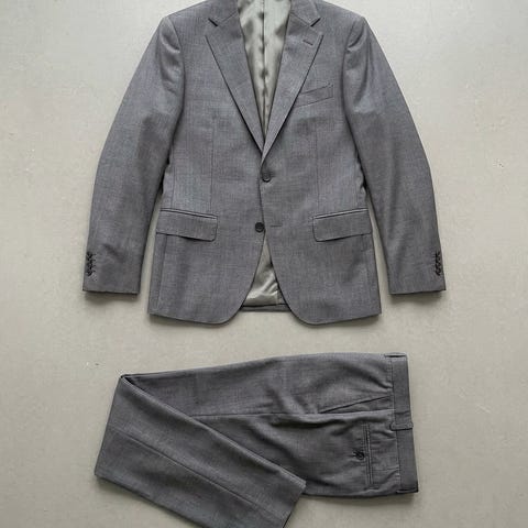 Corneliani herrekostume i uld, størrelse 58, ny med mærkat, grå med blå tern, regulær pasform, jakke længde 84 cm, ærmelængde 69 cm, skuldre 48 cm, brystomfang 62 cm, talje 60 cm, bukse talje 53,5 cm, længde skal tilpasses. Klik på den blå "gå til varen" knap, for at købe eller byde på denne vare. Den samlede pris vil blive vist inden du afgiver dit bud.