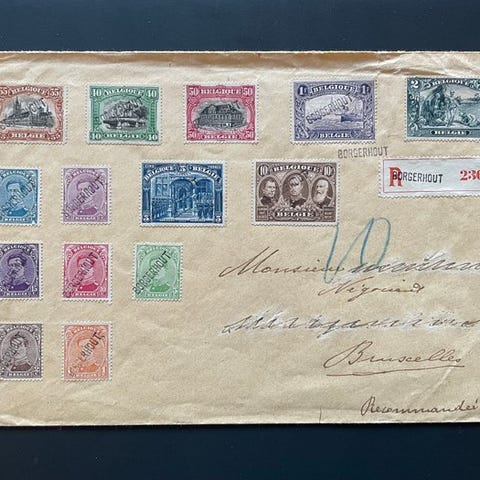 Geografisk oprindelse Belgien, Titel MERCIER OBP 342/50 fuld opstilling på brev med certifikat, afstemplet, adresseret og afgået; afsendt fra Bruxelles 20-07-1932 til Stuttgart 21-07-1932; OBP 343/50 forside, OBP 342 bagside; sjælden, VF/XF. Klik på den blå "gå til varen" knap, for at købe eller byde på denne vare. Den samlede pris vil blive vist inden du afgiver dit bud.
