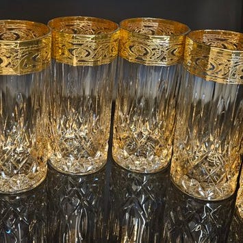 Meget elegant kageunderlag i rent krystal, typografisk udskåret med nåle og dekoreret med ren 24 kt guld, bagt ved høje temperaturer af mesterhåndværkere.