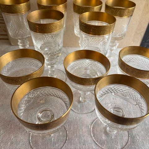 Prestigiøst Krystalservice "Marlowe Gold" – Theresienthal-manufaktur (Tyskland, omkring 1950-1960)