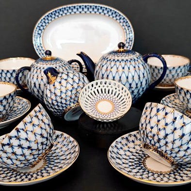 Fremstillet i Rusland af den kejserlige Lomonosov Porcelænsfabrik
