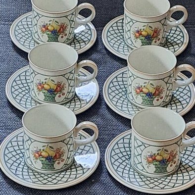 6 Te-kopper: Diameter 7,5 cm, Højde 7 cm.