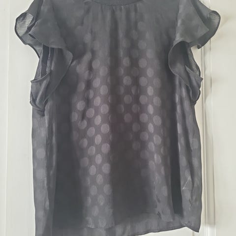 Flot top med leo print og snortynde stropper. Toppen har en fin detalje, hvor der er en form for "kappe" hele vejen rundt, så den er i 2 lag med åbning foran. BM ca. 2x51 cm. Fremstår i meget flot stand 🌸
