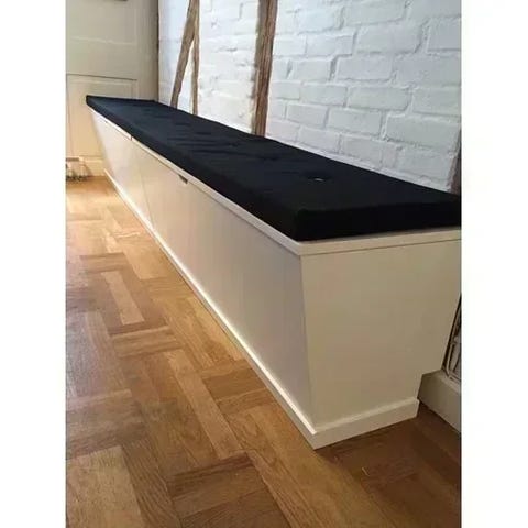Vi laver også hynder i moderne møbelstoffer og læder lavet på mål så de passer til bænken.