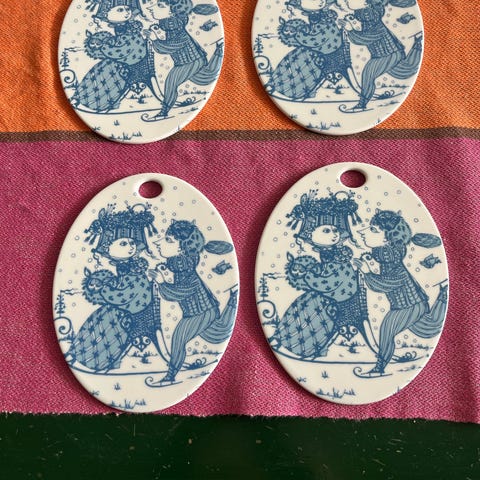Porcelæn, Smørrebræt, Winblad, Rundt smørrebræt med rødt mønster fra bjørn winnblad.