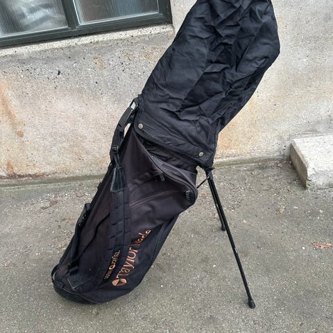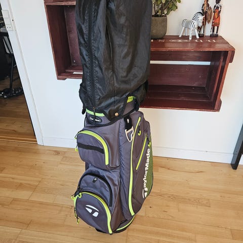 Taylormade golfbag i grå og sort med flere lynlåslommer og inddelt top til organisering af køller. Sættet omfatter et jernsæt med nummererede jern samt køller, som på billederne. Golfbagen har bærehåndtag og flere rum til opbevaring af bolde, handsker og andet udstyr. Velegnet til golfspillere, der ønsker et komplet sæt med bag til brug på banen eller træningsområdet.