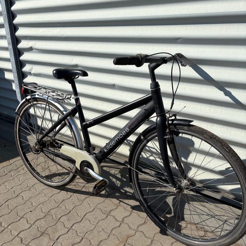 Kildemoes hybridcykel til unisex i størrelse XL med 28" hjul. Cyklen har lige styr, fodbremse bag og fælgbremse for. Stellet er i en mørk blå farve med matchende skærme og sadel. Velegnet som hverdagscykel og pendlercykel på asfalt og cykelstier. Den trænger til noget kærlighed, og er flad på baghjulet.