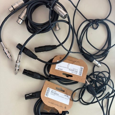 Samling af jack- og XLR-kabler i sort. 1 sæt mand/hun a 2 meter og 8 sæt af 1 meter. Velegnede til brug i musikstudie, til instrumenter, mikrofoner og andet lydudstyr med jack- eller XLR-tilslutning. Stik og kabelkappe er i metal og plast.