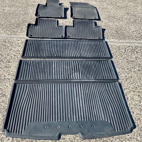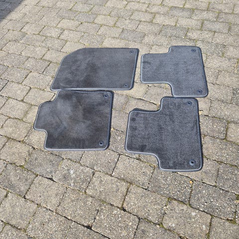 Volvo 32357642 bilmåtter sæt i sort. Sættet består af fire måtter til bilens kabine. Måtterne er formskårne tæppemåtter med fæstne i den ene måtte, så de kan monteres korrekt i bilen. Fremstillet til Volvo og produceret i Polen. Velegnet som gulvbeskyttelse i bilens for- og bagsæde.