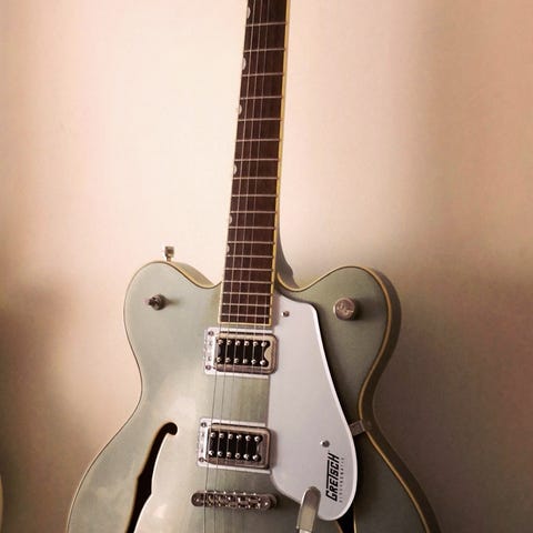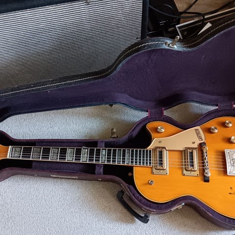 Den har været forbi Hansen Guitars i Stenstrup sidste år, hvor der blev lavet en shim til den, så den fik den helt rigtige vinkel og lav spilbarhed.