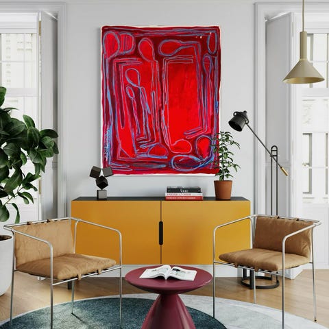 Maleriet som er malet af upcoming kunstner Rikke Bakowsky er akryl og oliesticks på lærred. Maleriet vil uden tvivl tilføje stil, kant og eksklusivitet til din bolig.