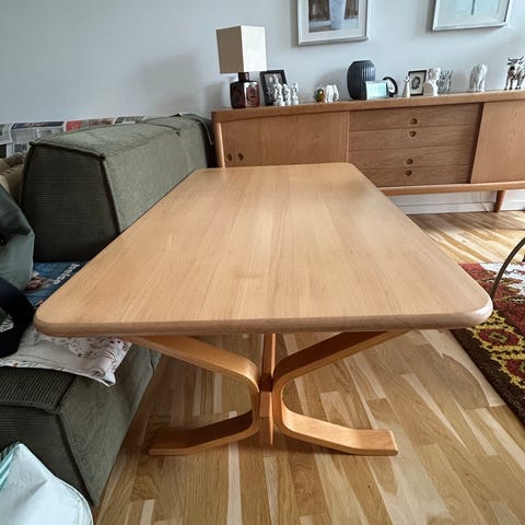 Bordet er robust og solidt udført med en smuk, naturlig træfinish. Den brede bordplade gør det ideelt til både hverdag og gæster – perfekt til kaffe, bøger eller dekoration.