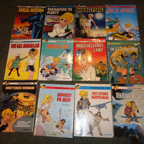 Tegneserier, Natacha, Natacha nr. 1 og nr. 2 - Nummer 1 er 3. oplag og nummer 2 er 2. oplag med hjørnecut - fremstår i ok stand men med tydelige brugsspor.