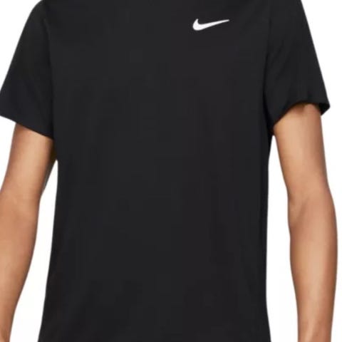 Nike Dri-Fit NY Court polo t-shirt til mænd i størrelse L. Trøjen har krave med knaplukning og er designet i flere farver med lilla øverste del, sort tværgående stribe og hvid nederste del samt lille Nike-logo på brystet. Fremstillet i let, åndbart Dri-Fit materiale, der leder sved væk fra kroppen, velegnet til fitness og anden træning samt hverdagsbrug.