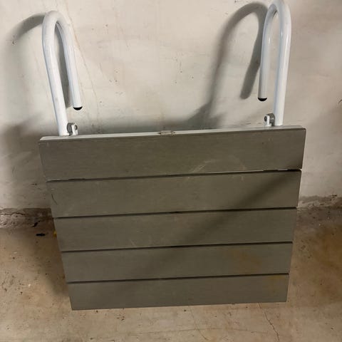 Harald Nyborg altanbord til montering på altanræling. Bordet hænger på gelænderet med to bøjler, som ses på billedet af emballagen. Velegnet som lille afsætnings- eller arbejdsplads på altanen.