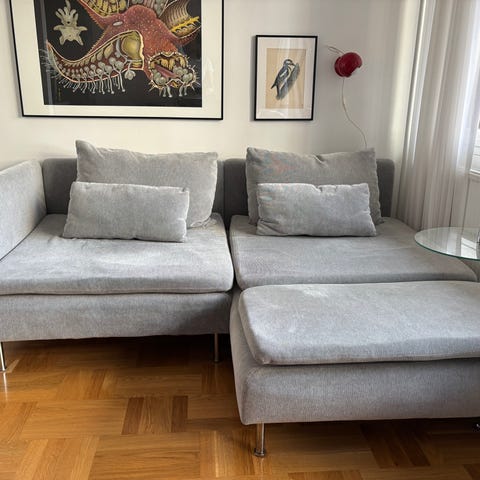 Sofaen kan delse i to og er nem at transportere.