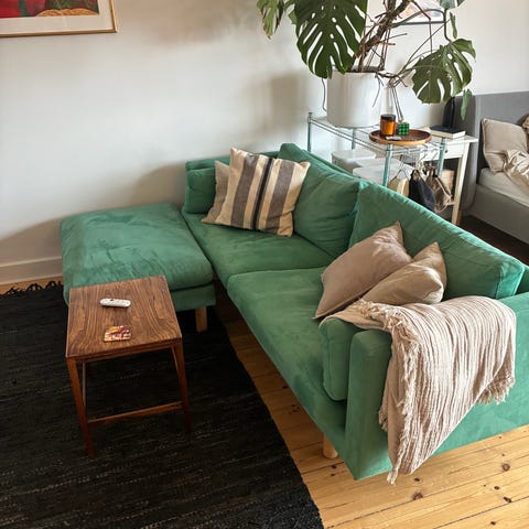 Sofaen er blevet støvsuget og alle sofapuder er banket og vasket.