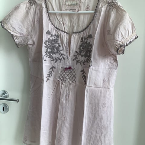 Den flotteste hvide skjorte bluse med mange flotte detaljer så som pudder farvet og sorte/koks grå blonder og elastik i taljen. Se billeder!