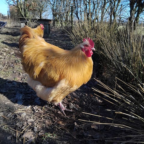 Grå Orpington hane og høne fra maj 2025. Høne i fin æglægning. Dyrene er vant med at gå frit i have. Sælges helst samlet for DKK 800