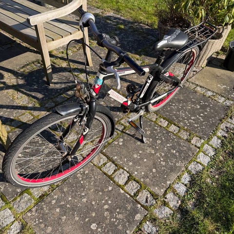 Puch Comet børnecykel med 24" hjul i sort. Cyklen har lige styr, saddel med justerbar sadelpind og fastmonteret bagagebærer. Udstyret med skærme for og bag, reflekser i hjulene samt ringeklokke på styret.