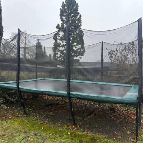 Trampolinen er brugt, men fungerer fint og er stadig blevet brugt af børnene.