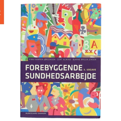 Forebyggende sundhedsarbejde , Finn Kamper-Jørgensen mfl. , emne: krop og sundhed, Bogen er købt fra ny og er næsten ikke blevet brugt og er derfor i god stand. Der er overstregninger i kap. 1 og 2 og på 3 sider i kap. 21.