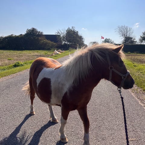 Sød, dejlig til tider lidt fræk shetlænder blandinghoppe sælges.
