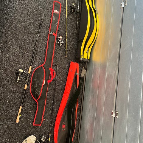 Ubrugt spinnesæt med multihjul til gedde, aborre, sandart eller kystfiskeri. Abu Conolon 8' (240cm), 10-30g med trigger til multihjul. Aldrig brugt og der er stadig plast på håndtaget. Hjulet er et Quantum Iron monteret med ca. 160m fletline omkring 0,18mm + bagline. Klar til brug. Se billeder.