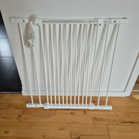 Sikkerhedsgitter fra Jysk sælges, da der ikke er behov for det alligevel. Har været sat op 1 gang. Brugt 3 uger. Skal skrues fast.