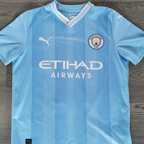 Puma Manchester City hjemme fodboldtrøje str. 164 T-shirt i så fin stand som en ny. Ann. nr. P866