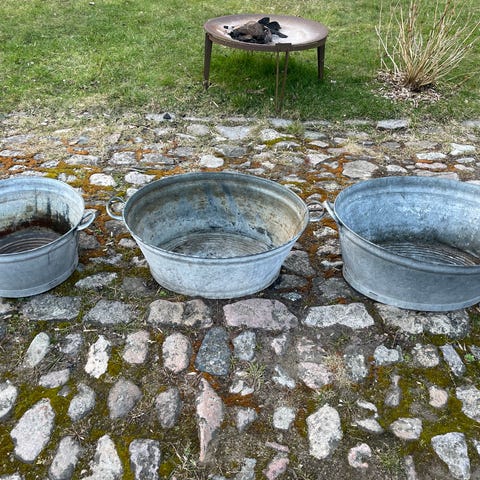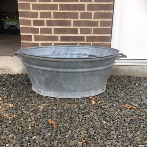 Sælger 3 flotte zinkbaljer, perfekte som plantekummer eller til dekoration i haven.