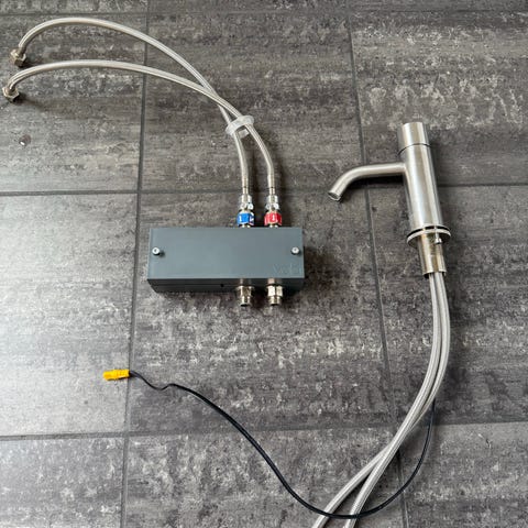 Blandingsbatteri til håndvask i rustfrit stål. Armaturet er udført i børstet stål-look med et greb til regulering af vandmængde og temperatur. Leveres med tilslutningsslanger og monteringsbeslag til installation i bordplade eller vask. Velegnet til brug på badeværelse eller gæstetoilet.