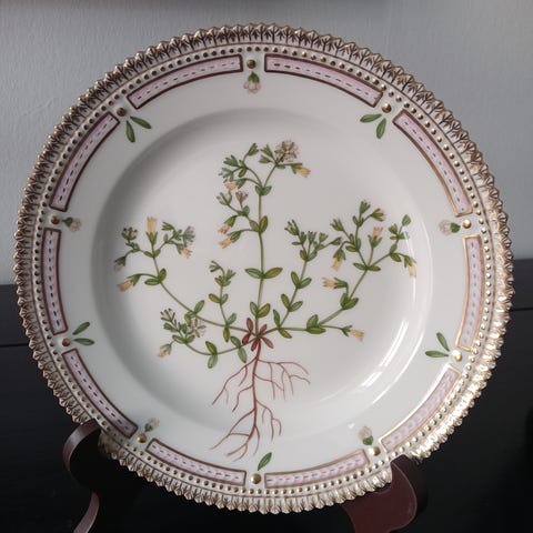 Flora Danica Porcelænsplakette oval med silhouetmotiv og kroneophæng