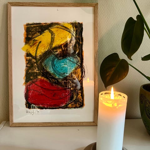 abstrakt kunst, maleri, original kunst, moderne kunst, ekspressiv kunst, samtidskunst, akvarel, oliekridt, kunst på papir, indrammet kunst, sort ramme, grafisk kunst, vægdekoration, boligindretning, kunst til væg, litografi