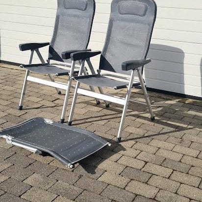 4-stk brugte alu klapstole, der medfølger 2-stk ‘skamler’ der kan sætte på, (se billede)